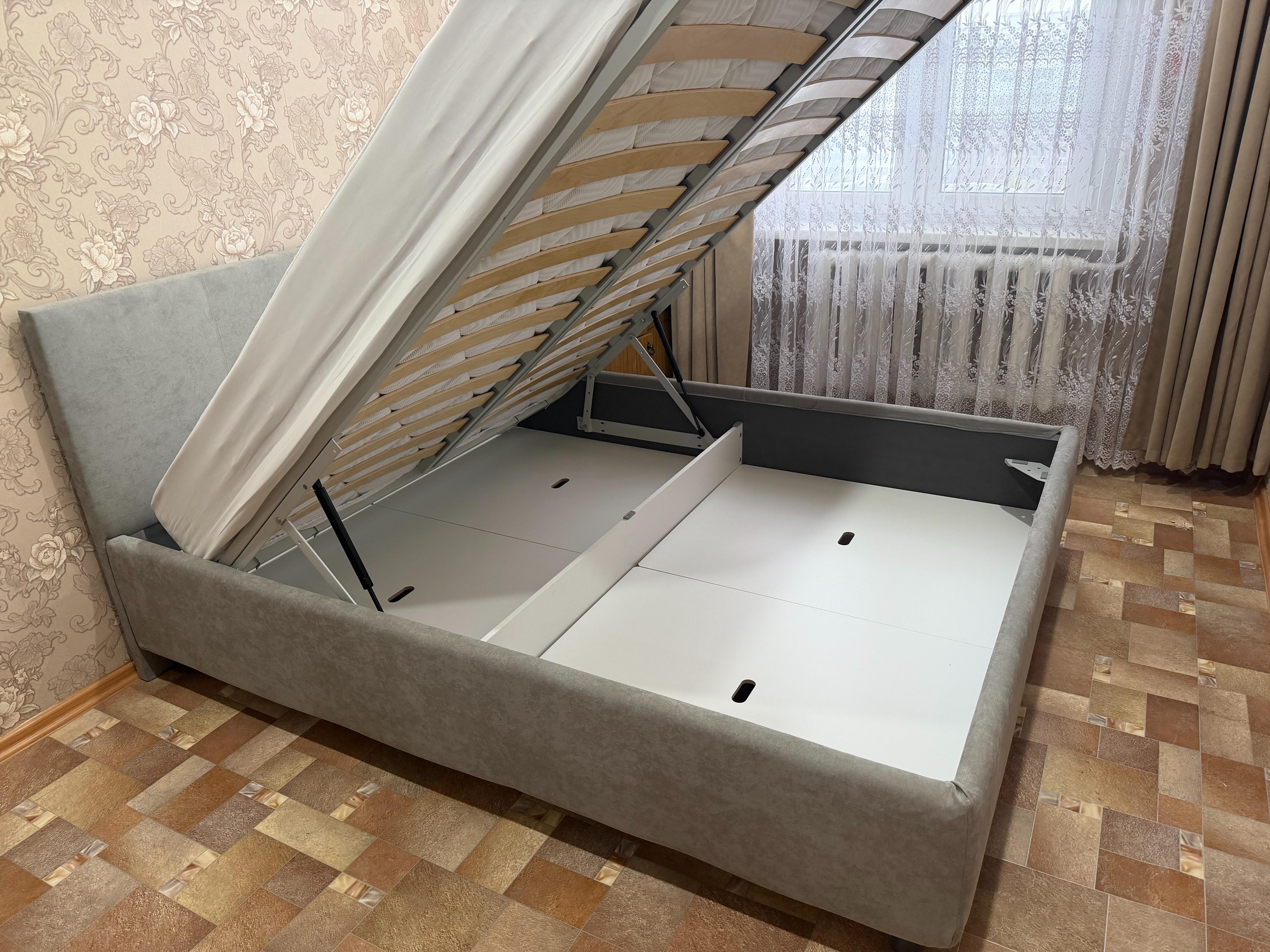 Шикарная кровать, удобный подьемный механизм, сьемный боковой материал на липучках, если необходимо его постирать можно снять без проблем От заказа до привоза прошло две недели, очень быстро доставили, собрали моментально, мусор за собой увезли Заказывал в открытом материке,в самом магазине она стоит, можно присмотреться, потрогать, полежать