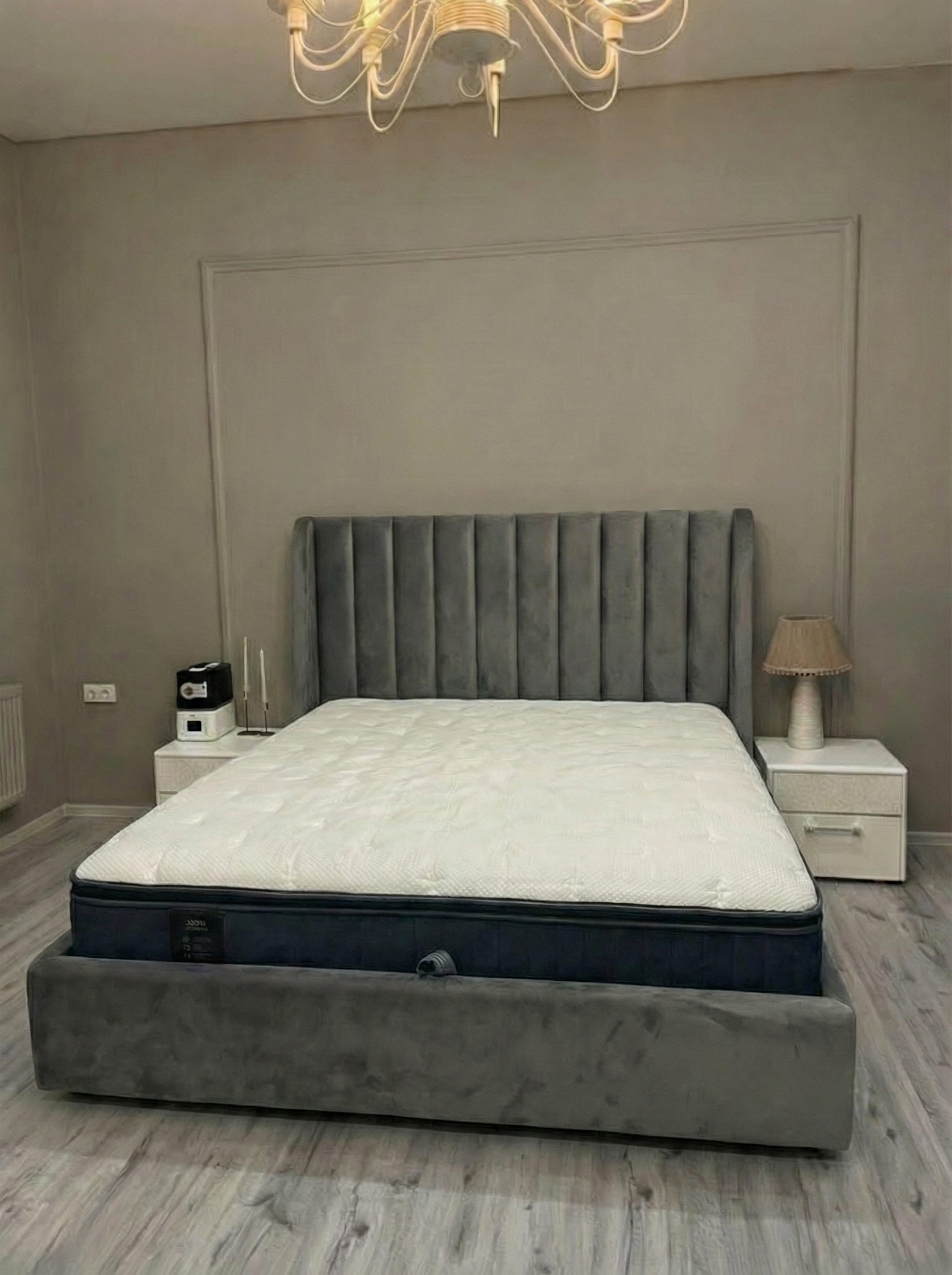 Кровать очень стильно выглядит, прям как из Pinterest, давно такую искала. Долго выбирала и остановилась на этом экземпляре. В приоритете был подъемный механизм, большой ящик, мягкая основа. И большая спинка со стороны головы. Отличная ткань, всё крепкое и надёжное. Комплектом к кровати взяли матрас. Просто идеальный, прошит аккуратно, чистый, соответствует всему заявленному, стал любимым местом семьи. Этикетка производителя на месте, всем советую такой матрас, совсем не пожалела, что купила такое спальное место.